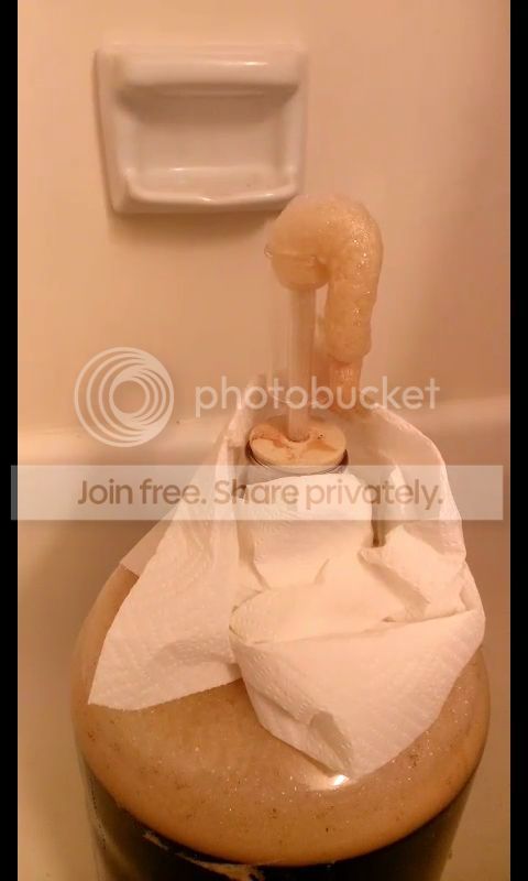i'll be checking that carboy regularly. as soon as the fermentation dies enough that I can put the air lock back together i'll do so.